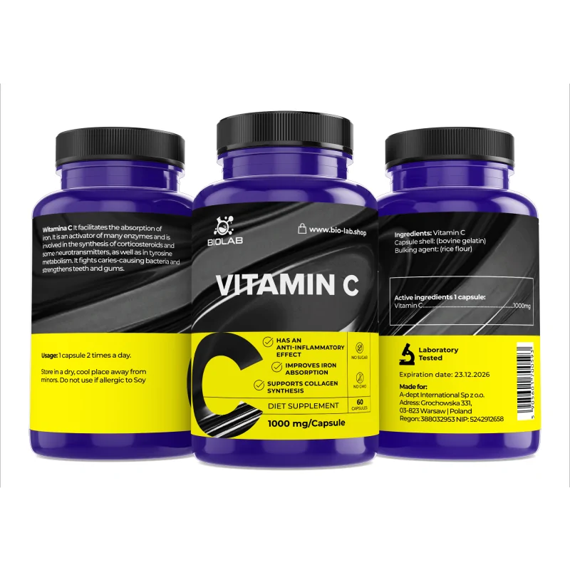 La vitamine C est un puissant antioxydant et un élément important de la supplémentation quotidienne. Elle aide à protéger les cellules contre le stress oxydatif et contribue également au fonctionnement normal des systèmes nerveux et immunitaire. Le corps humain ne synthétise pas la vitamine C, elle doit donc être apportée par l'alimentation ou sous forme de supplémentation.