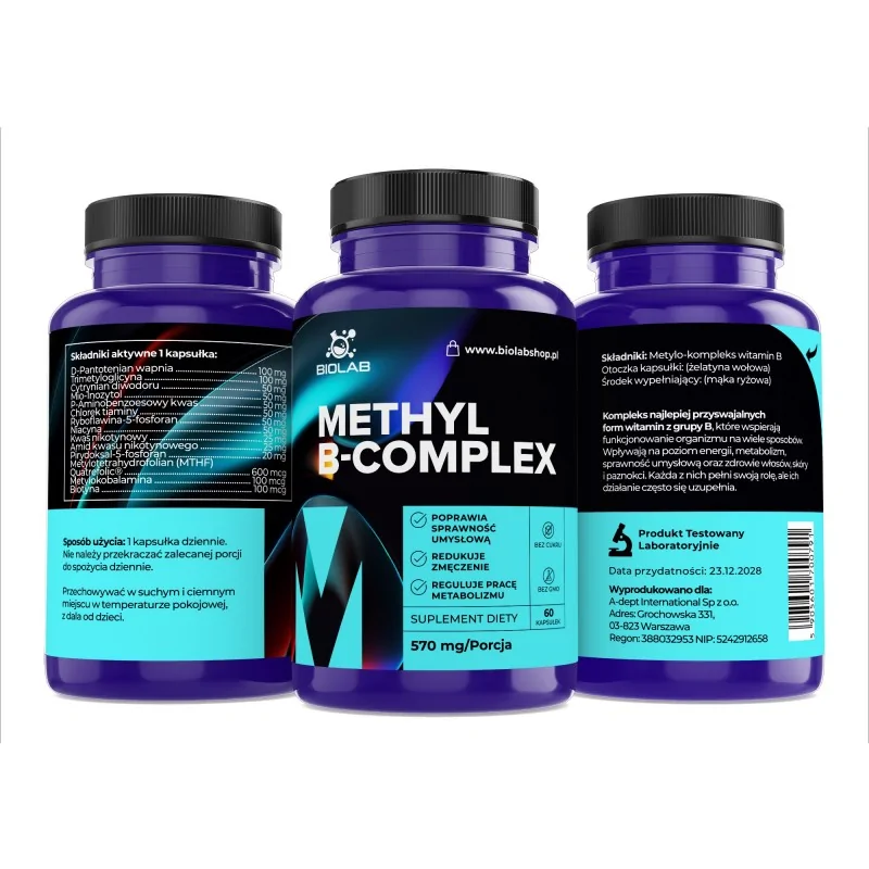 Le complexe méthylé de vitamines B est une formule avancée basée sur des formes actives et bien assimilables de vitamines B sélectionnées. Le complexe a été élaboré pour les personnes qui souhaitent soutenir de manière globale le fonctionnement quotidien de l’organisme – en particulier le système nerveux, le métabolisme énergétique ainsi que le maintien de la vitalité au quotidien. Certaines vitamines B contribuent également à réduire la fatigue, et la vitamine B6 soutient la régulation de l’activité hormonale.