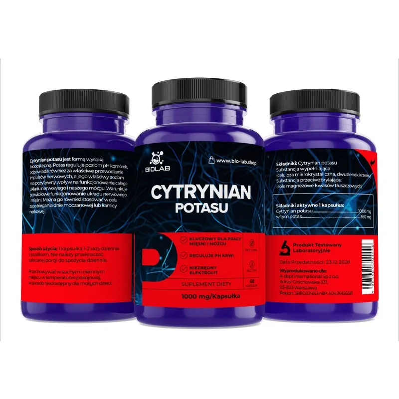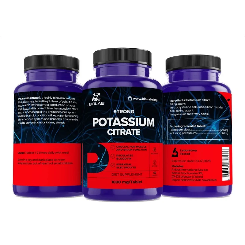 Citrate de potassium 1000 mg - une dose bien absorbée pour l'équilibre électrolytique et la fonction musculaire