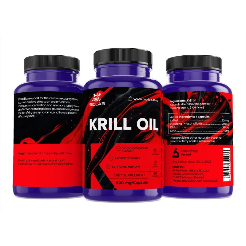 Voici notre supplément d'huile de krill 500 mg, une source d'acides gras Oméga-3 de première qualité qui offre un soutien complet à la santé cardiovasculaire, aux fonctions cognitives et à la mobilité des articulations. Provenant du krill antarctique récolté de manière durable, notre huile de krill de haute qualité contient un mélange naturel d'acide eicosapentaénoïque (EPA) et d'acide docosahexaénoïque (DHA), soutenant efficacement le bien-être et la vitalité en général.